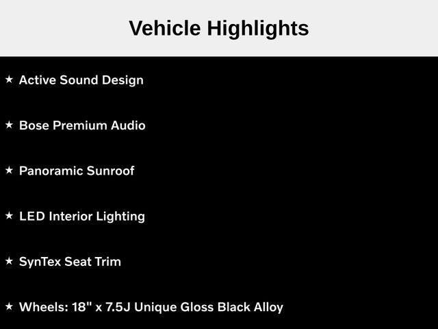 - Wheels: 18" x 7.5J Unique Gloss Black Alloy