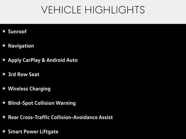 Sunroof, Navigation, Apply CarPlay & Android Auto, 3rd Row Seat, Wireless Charging, Blind-Spot Collision Warning, Rear Cross-Traffic Collision-Avoidance Assist, Smart Power Liftgate, Leather, Heated and Cooled Seats, Remote Start, Bluetooth®, Backup Camera, Smart Cruise Control w/Stop & Go, Lane Following Assist, Forward Collision Avoidance, High Beam Assist, Highway Driving Assist, Lane Keep Assist, Lane Departure Warning, Push Button Smart with Smart Key, Smartphone Digital Key, Kia Connect with 3 years free, SIRIUSXM Radio, 2nd Row Captain Chairs, 2.5L 4-Cylinder.
