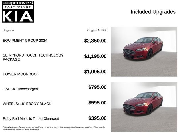 2016 Ford Fusion SE Ruby Red Metallic 1.5L EcoBoost FWD 24/36 City/Highway MPG 6-Speed Automatic