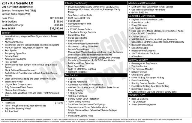 2017 Kia Sorento LX Remington Red Metallic 3.3L DOHC AWD 18/25 City/Highway MPG 6-Speed Automatic with Sportmatic