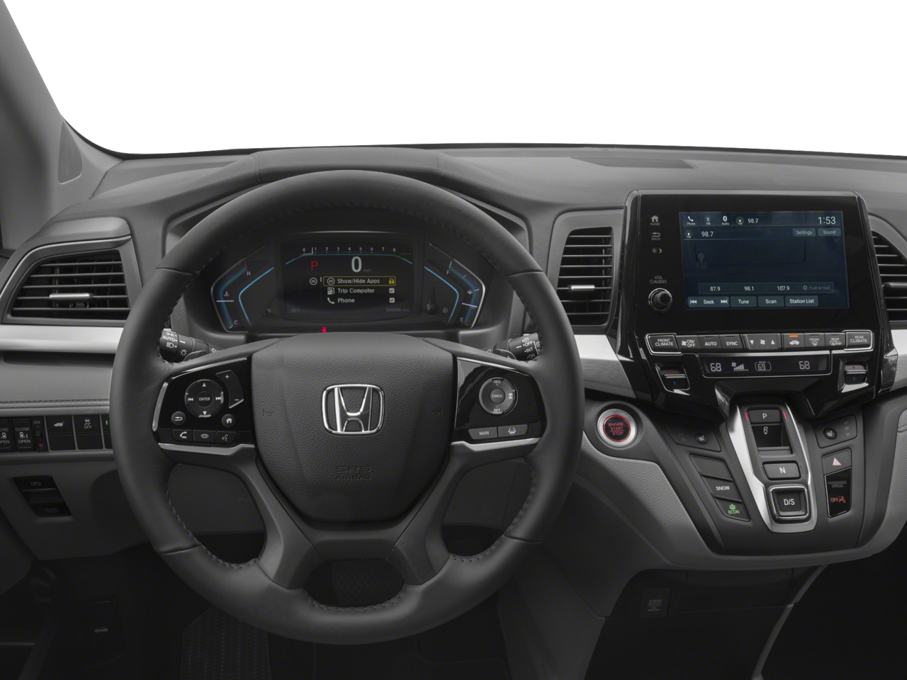 - Radio: 160-Watt AM/FM/HD/SiriusXM Audio System -inc: 6 speakers, subwoofer, Bluetooth® HandsFreeLink, Bluetooth® streaming audio, MP3/auxiliary input jack, radio data system (RDS), SMS text message function, 2.5-amp USB smartphone/audio interface port in center console, 2 2.5-amp USB charging ports in second row, CabinControl remote compatibility, 8" display audio w/high-resolution (720P) electrostatic touch-screen and customizable feature settings, Apple CarPlay/Android Auto, illuminated steering wheel-mounted audio controls and black fin-type roof-mounted antenna