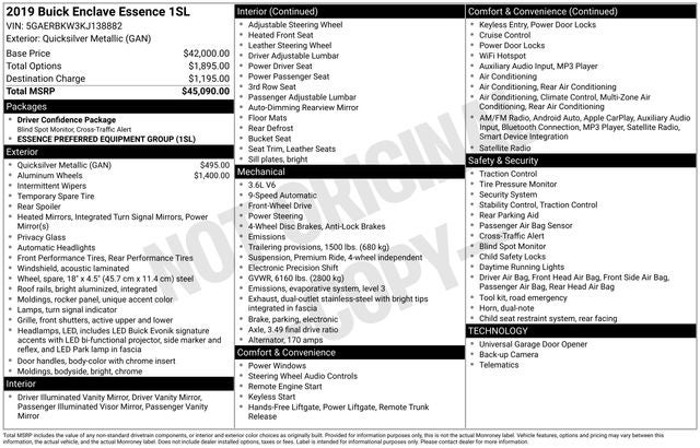 2019 Buick Enclave Essence Quicksilver Metallic 3.6L V6 SIDI VVT FWD 18/26 City/Highway MPG 9-Speed Automatic