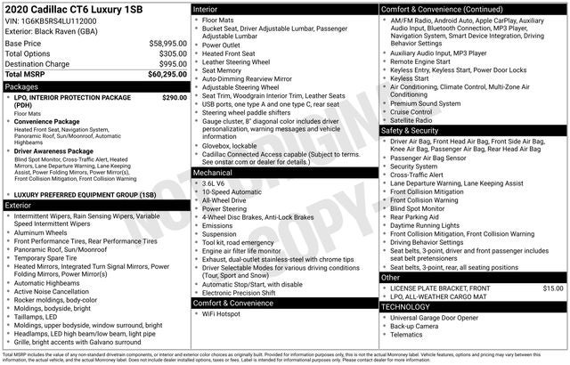 2020 Cadillac CT6 3.6L Luxury Black Raven 3.6L V6 SIDI DOHC VVT AWD 18/27 City/Highway MPG 10-Speed Automatic