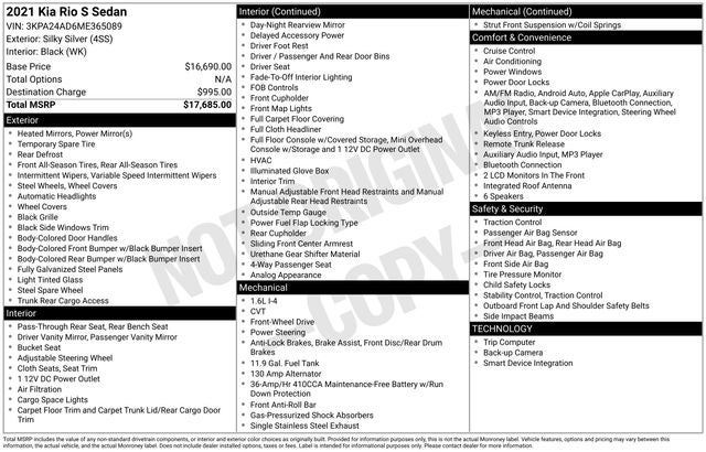 2021 Kia Rio S Silky Silver 1.6L 4-Cylinder FWD 33/41 City/Highway MPG CVT