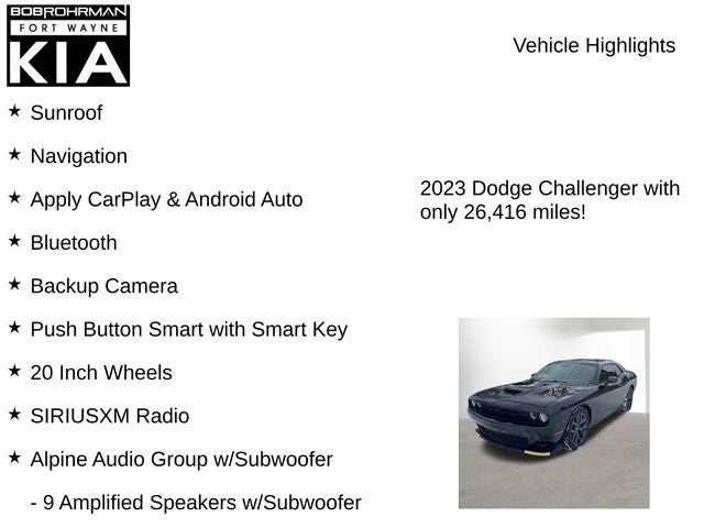 2023 Dodge Challenger GT Pitch Black Clearcoat 3.6L V6 24V VVT RWD 19/30 City/Highway MPG 8-Speed Automatic