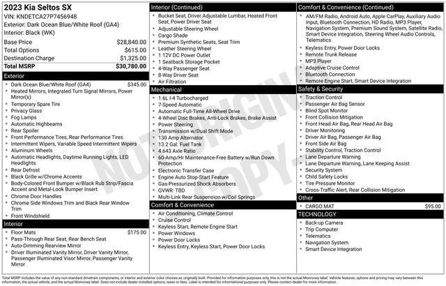 2023 Kia Seltos SX Dark Ocean Blue/White Roof I4 AWD 25/30 City/Highway MPG 7-Speed Automatic