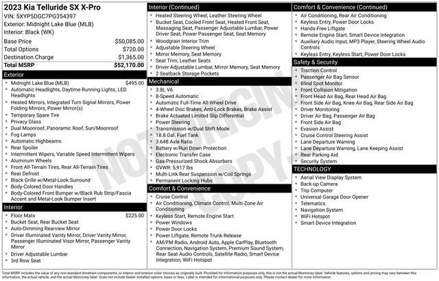 2023 Kia Telluride SX X-Pro Midnight Lake Blue 3.8L V6 DGI DOHC Dual CVVT AWD 18/24 City/Highway MPG 8-Speed Automatic